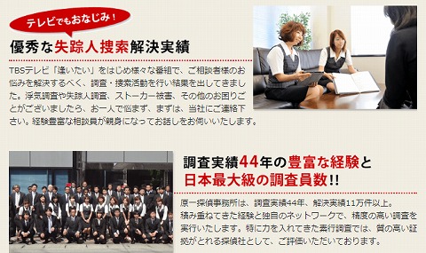 原一探偵事務所は全国主要都市に拠点があるので、全国どこの地域に行方不明者が移動していたとしても最寄りにある自社の専任スタッフが捜索対応できるので発見率が非常に高いのが特徴です。家出人発見は時間との勝負ですので、公式HPからフリーダイヤルで電話相談することをオススメします。